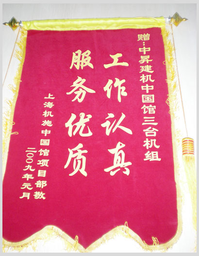我公司上海世博會(huì)中國(guó)館三臺(tái)機(jī)組及趙永松、王亮、韓亮等十七位工程師因其在工作中出色表現(xiàn),獲上海機(jī)施中國(guó)館項(xiàng)目部高度肯定。