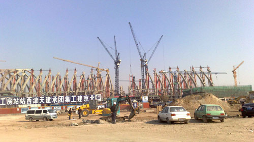 天津西站四臺行走式塔機-ZSL1100吊裝施工圖