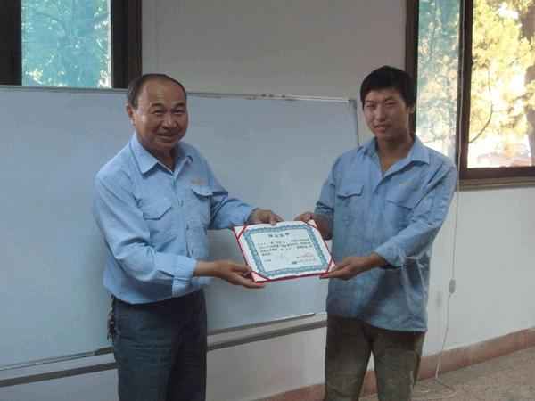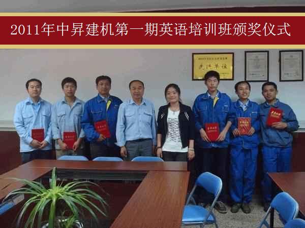 青青艷陽五月天 萬類花朵竟爭艷,在此春暖花開的大好之際迎來了中昇建機第一期英語培訓(xùn)班結(jié)業(yè)頒獎儀式的開幕?! ”敬晤C獎儀式的參會人員主要有管理部主任王德華先生、中昇英語教育訓(xùn)練負責(zé)人陸偉老師,以及各位獲獎人員。