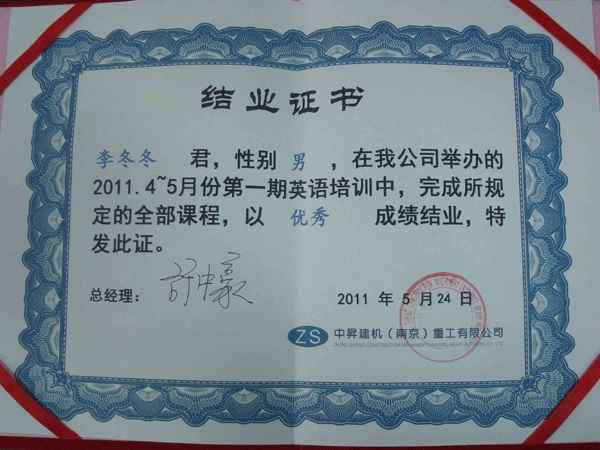 圖7 李冬冬同志以優(yōu)異的成績榮獲英語結(jié)業(yè)證書——是各位同志學(xué)習(xí)的楷模