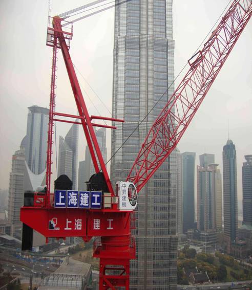 由上海建工公司承建的上海中心大廈工程采用了中昇建機(jī)塔機(jī)ZSL2700,吊裝順利進(jìn)行。ZSL2700在世界高層鋼結(jié)構(gòu)建設(shè)中,屬超大型的內(nèi)爬式動(dòng)臂塔式起重機(jī)。ZSL2700采用柴油發(fā)動(dòng)機(jī)引擎驅(qū)動(dòng),該塔機(jī)最大工作幅度為60m,而在27m吊裝幅度范圍內(nèi)可吊重達(dá)100t,最大起升高度達(dá)632m,起升速度達(dá)110m/min。其吊裝性能和技術(shù)水平在國內(nèi)處于領(lǐng)先地位!