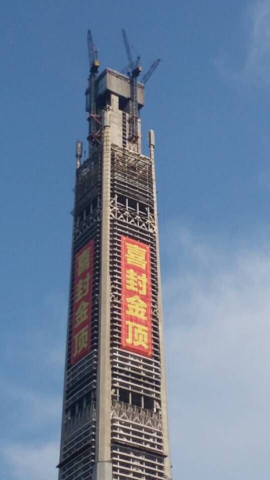 2015年9月8日上午,隨著最后一車12方混凝土泵送出管,2015年9月8日上午,隨著最后一車12方混凝土泵送出管,由中昇建機(jī)參建的天津117大廈主塔樓核心筒結(jié)構(gòu)高度達(dá)到596.5米,成為世界結(jié)構(gòu)第二高樓,中國結(jié)構(gòu)第一高樓(世界結(jié)構(gòu)第一高樓為哈利法塔)。117大廈建筑體量約為84.7萬平方米。