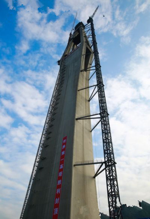 11月13日下午,2016年4月29日開工建設(shè)的平塘特大橋三座主塔已成功封頂,工程編號(hào)為16號(hào)的主塔塔高332米,為目前高混凝土同類型橋梁世界第一,較目前國內(nèi)最高塔蘇通大橋主塔(300.4m)高31.6米。