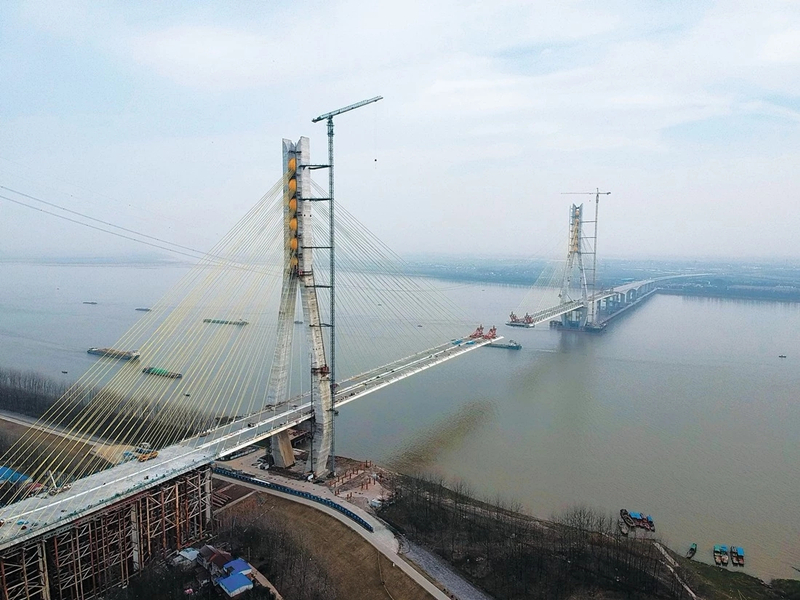 池州長江公路大橋是安徽省“四縱四橫”高速公路網(wǎng)規(guī)劃中“縱三”濟(jì)南至祁門高速公路跨越長江的關(guān)鍵性工程。長江主通航孔橋即跨江主橋全長1448m,采用登高塔混合梁雙塔斜拉橋方案。
