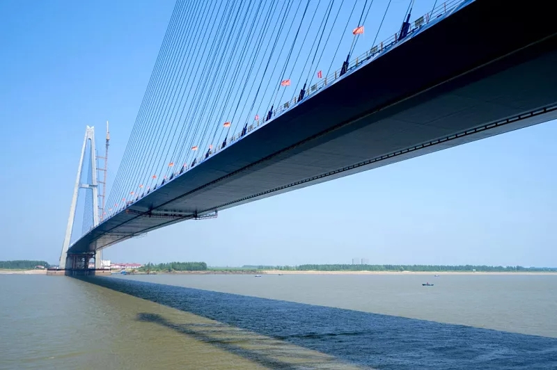 全長7548米的青山長江大橋,主跨達938米,是武漢四環(huán)線跨越長江的控制性工程之一,也是武漢市的第11座長江大橋。橋面比武漢沌口長江大橋還寬兩米,成為目前跨越長江橋面最寬的橋梁。