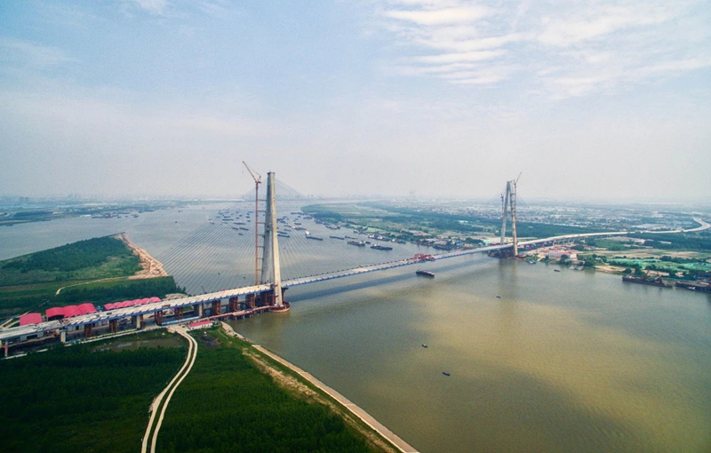 青山長江大橋采用中昇建機動臂式塔吊ZSL1150(64T)一臺,該項目是目前世界上跨度最大的全漂浮體系斜拉橋。這種橋梁的主橋鋼梁沒有橫梁支撐,依靠斜拉索的拉力處于全懸浮狀態(tài),顯得較為獨特。