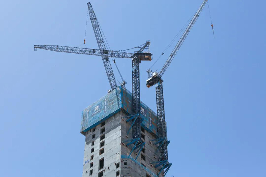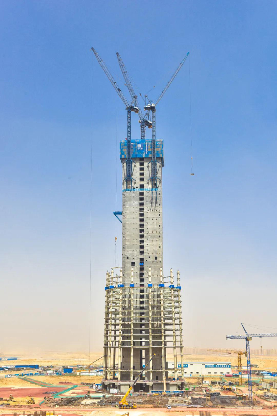 非洲第一高樓——埃及新首都CBD標(biāo)志塔施工建設(shè)中共有ZSL380、ZSL850和ZSL1700三臺(tái)動(dòng)臂塔吊投入使用,三臺(tái)動(dòng)臂塔吊扮演著不可或缺的角色。此次ZSL380和ZSL850動(dòng)臂塔吊高空移位爬升的同時(shí),ZSL1700動(dòng)臂塔吊完成第八次內(nèi)爬頂升。