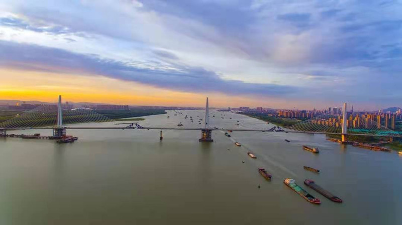 大橋主橋?yàn)檩p型鋼混結(jié)構(gòu)斜拉橋,線路全長(zhǎng)10.3千米,橋梁總長(zhǎng)4.4千米,主橋長(zhǎng)1796米,南北主跨長(zhǎng)1200米;橋面為雙向六車道城市主干道,設(shè)計(jì)速度100千米/小時(shí)。大橋整體分為橋梁段、路基段和隧道段三部分,橋梁段由北至南分別由北引橋、北主橋、南主橋、南引橋四個(gè)部分組成。