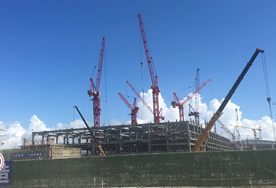 2017年9月17號(hào)下午,隨著最后一節(jié)標(biāo)準(zhǔn)節(jié)徐徐升起,港珠澳大橋旅檢大樓9#塔吊順利完成了使命,至此中昇建機(jī)五臺(tái)塔吊已全部安全拆除,標(biāo)志著全面轉(zhuǎn)入幕墻施工階段。 2017-09-22 |