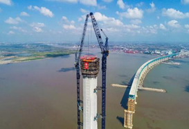 滬通長江大橋北主塔封頂 世界最高公鐵橋主塔誕生