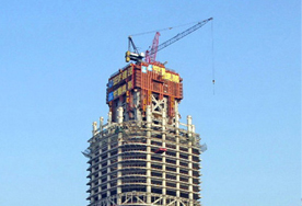 由中建三局承建的武漢中心大廈,建筑高度428米,采用中昇建機(jī)ZSL1250(最大吊重64t)。 2014-02-24 |