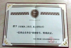 祝賀中昇建機(jī)(南京)重工有限公司于2014年11月被評為“江蘇省建筑施工機(jī)械設(shè)備租賃先進(jìn)單位”榮譽(yù)稱號。 2014-12-16 |