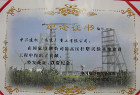 我公司塔吊ZSC80140因在特高壓桿塔試驗基地建設工程中出色表現(xiàn)獲得中國電力科學研究院高度評價。 2010-03-30 |