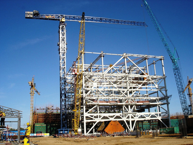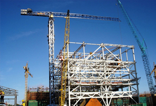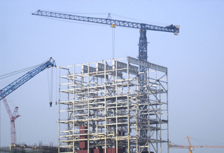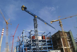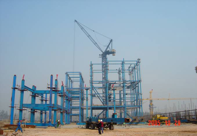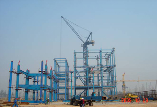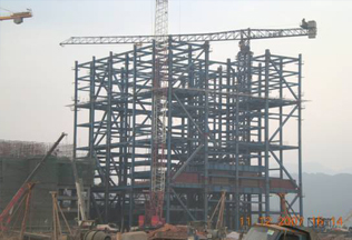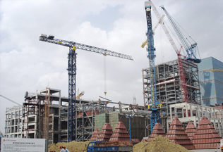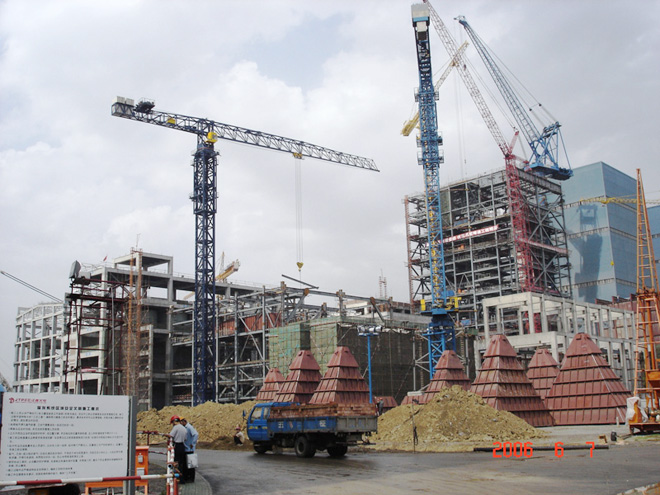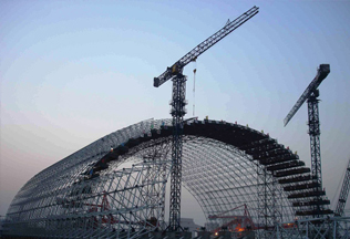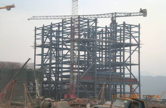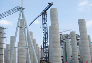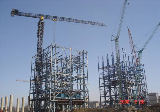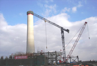 采用中昇建機ZSLB-I雙平臂自旋自升座地抱桿,高度210m最大吊重(兩邊)22m處吊10t