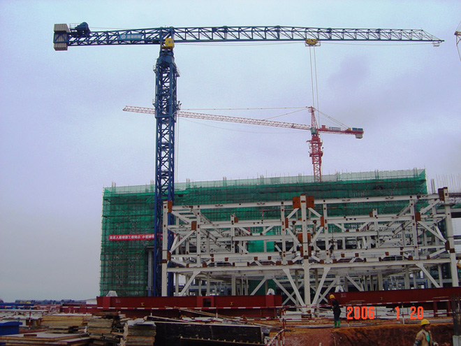 采用中昇建機ZSC2000B(ZSC70260)水平塔式起重機,高度115m最大吊重20.2m處吊100t
