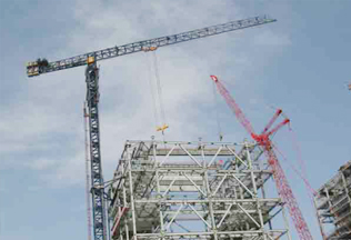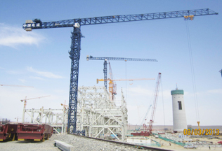采用中昇建機(jī)一臺(tái)ZSC80325(最大吊重120t),一臺(tái)ZSC60140(最大吊重50t),一臺(tái)ZSC70360(最大吊重140t)