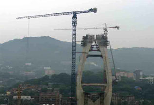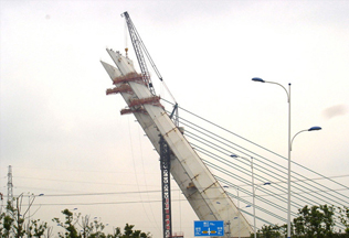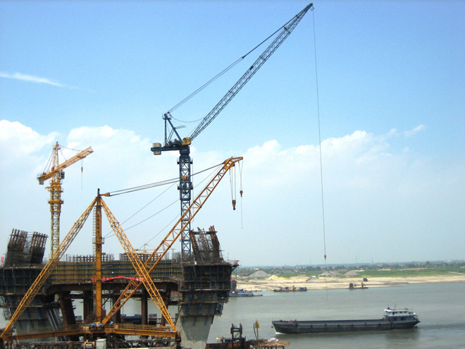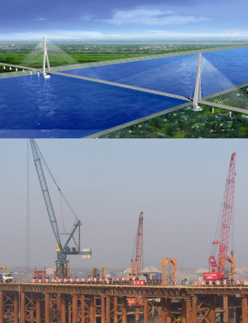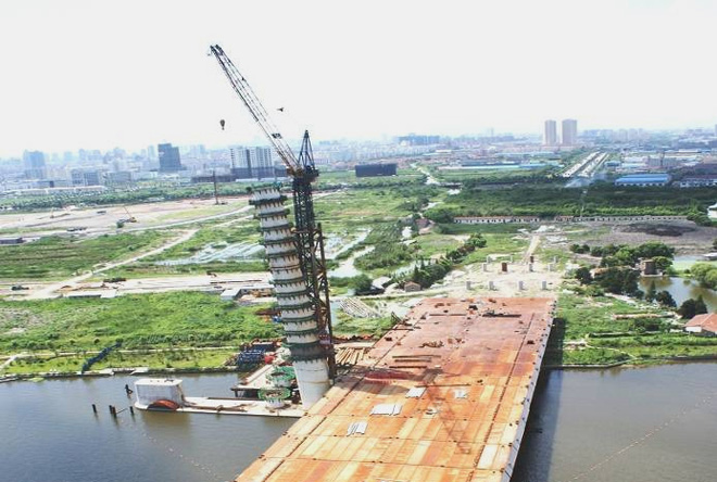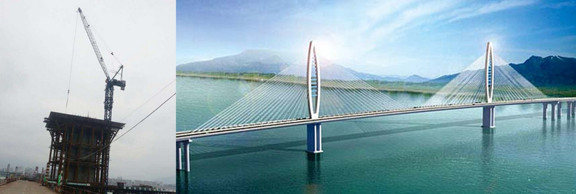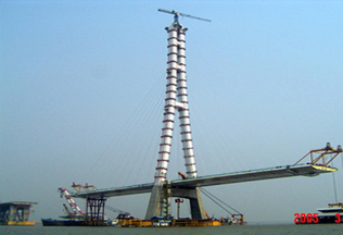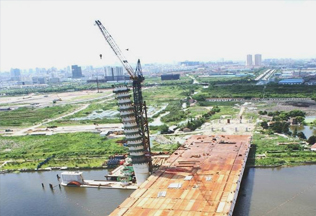 江蘇蘇通大橋跨徑1088米,采用中昇建機(jī)ZSL34300六臺(最大吊重80t)、ZSL5050一臺(最大吊重12t)、ZSL4060 一臺(最大吊重12t)